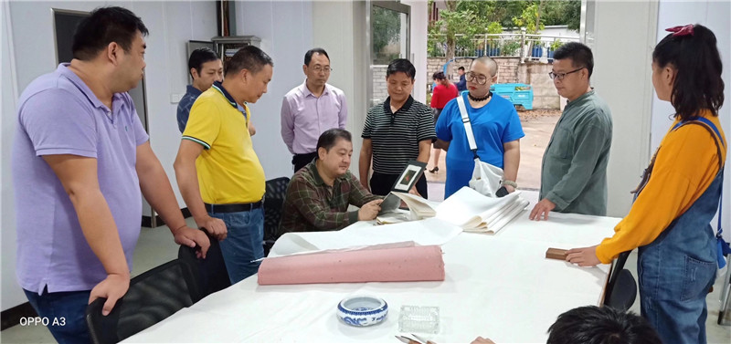 感謝休寧縣書法協(xié)會主席胡社文陪同安徽省青年書法家協(xié)會主席王亞洲等藝術(shù)家到公司指導(dǎo),體驗徽州楮皮紙傳統(tǒng)技藝。