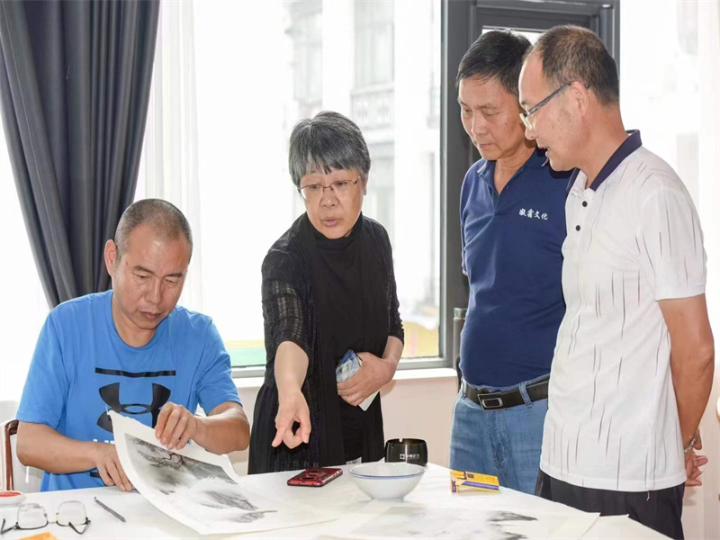 知名畫家汪家芳老師一行來公司指導(dǎo)并試筆