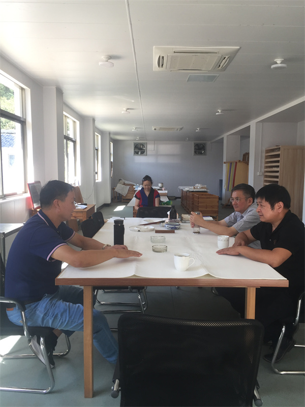 中科大湯書昆院長、徽硯大師朱岱老師以及竹紙工藝大師來我公司參觀學(xué)習(xí),探討紙制作技藝、進(jìn)行紙文化交流。