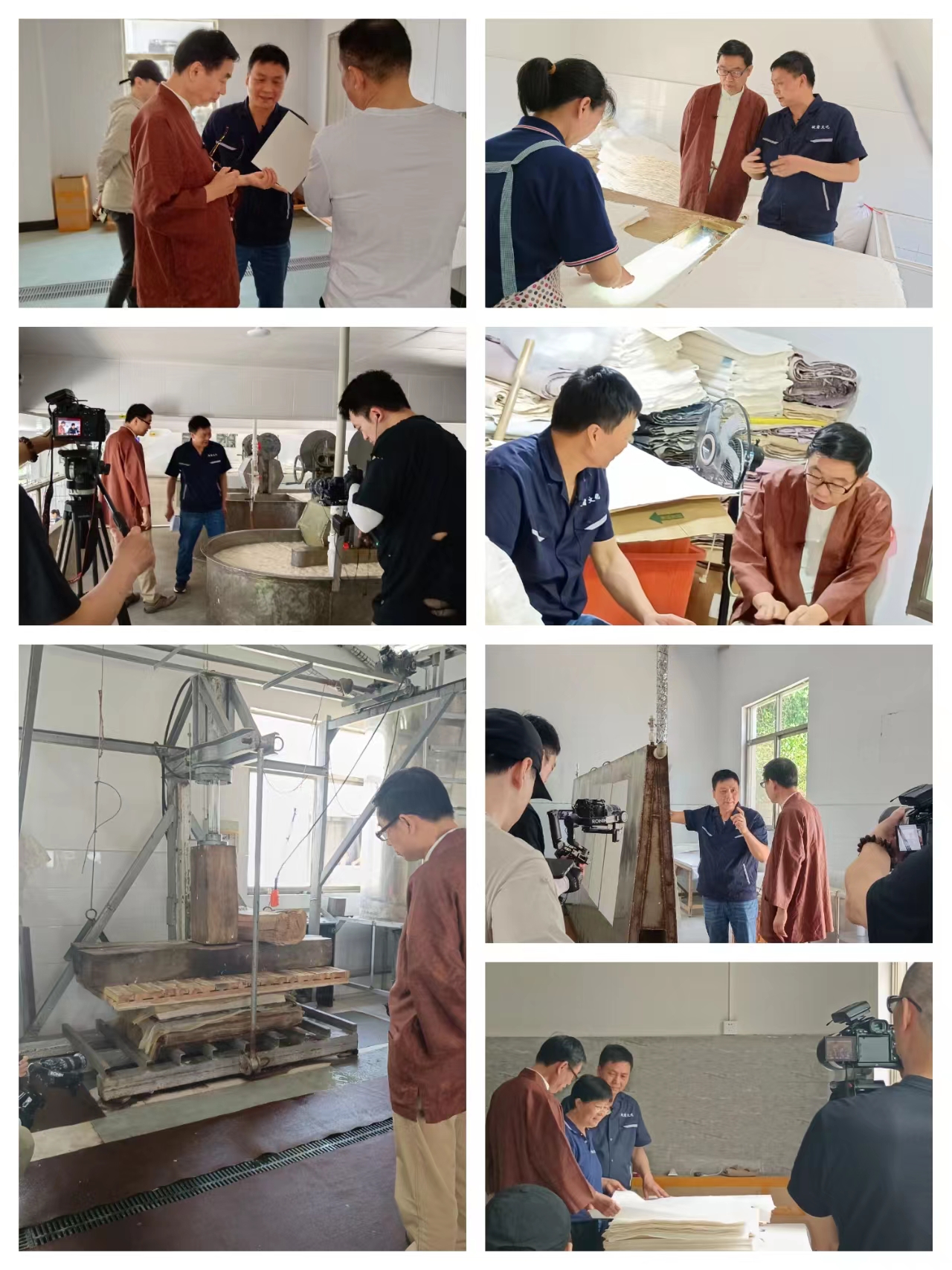 在黃山市凝霜文化發(fā)展有限公司,欄目攝制組全程記錄徽州楮皮紙第二代傳承人、非遺傳承人朱建新的徽州楮皮紙制作技藝。《文化大觀園》總策劃、主持人王魯湘詳細了解徽州楮皮紙的優(yōu)勢,制作的傳承和發(fā)展,并與徽州楮皮紙第二代傳承人朱建新面對面暢聊古法造紙和新技的結(jié)合。
