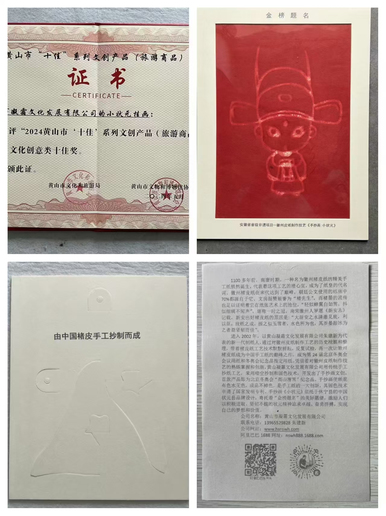 凝霜文化文創(chuàng)《小狀元掛畫》獲2024年黃山市“十佳”系列文創(chuàng)產(chǎn)品(旅游商品)稱號
